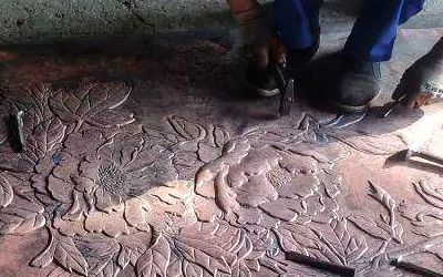 鍛造(咱們這兒特指鍛銅)——嘿!這可是體力活加技術(shù)活!拿銅板當(dāng)畫布,錘子當(dāng)畫筆,全靠師傅一錘子一錘子敲打出來(lái)的!尤其是浮雕、壁畫這類講究深淺效果的,這手藝絕了!純手工的精細(xì)活兒。